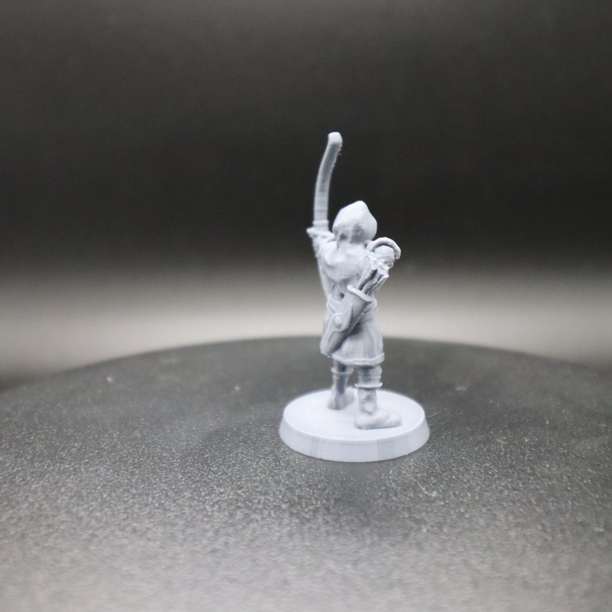 This elf is wielding a longbow and wearing plain clothes with quiver on their back.