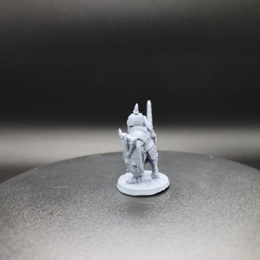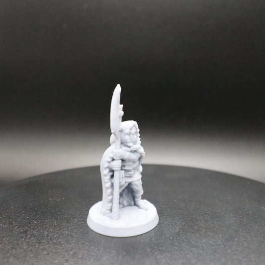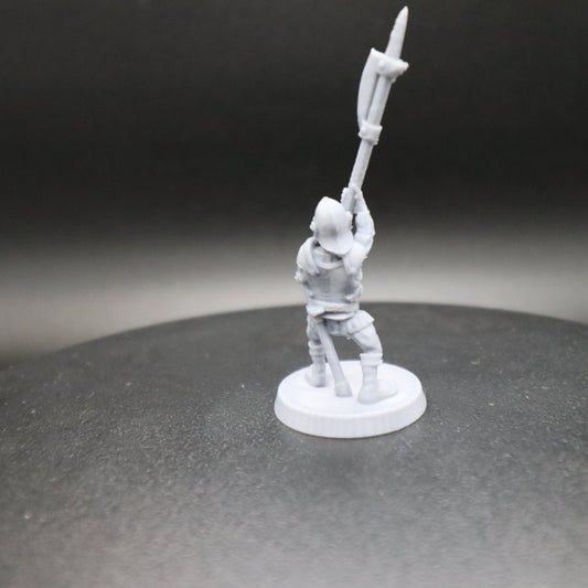 Guerrero oscuro con alabarda y escudo
