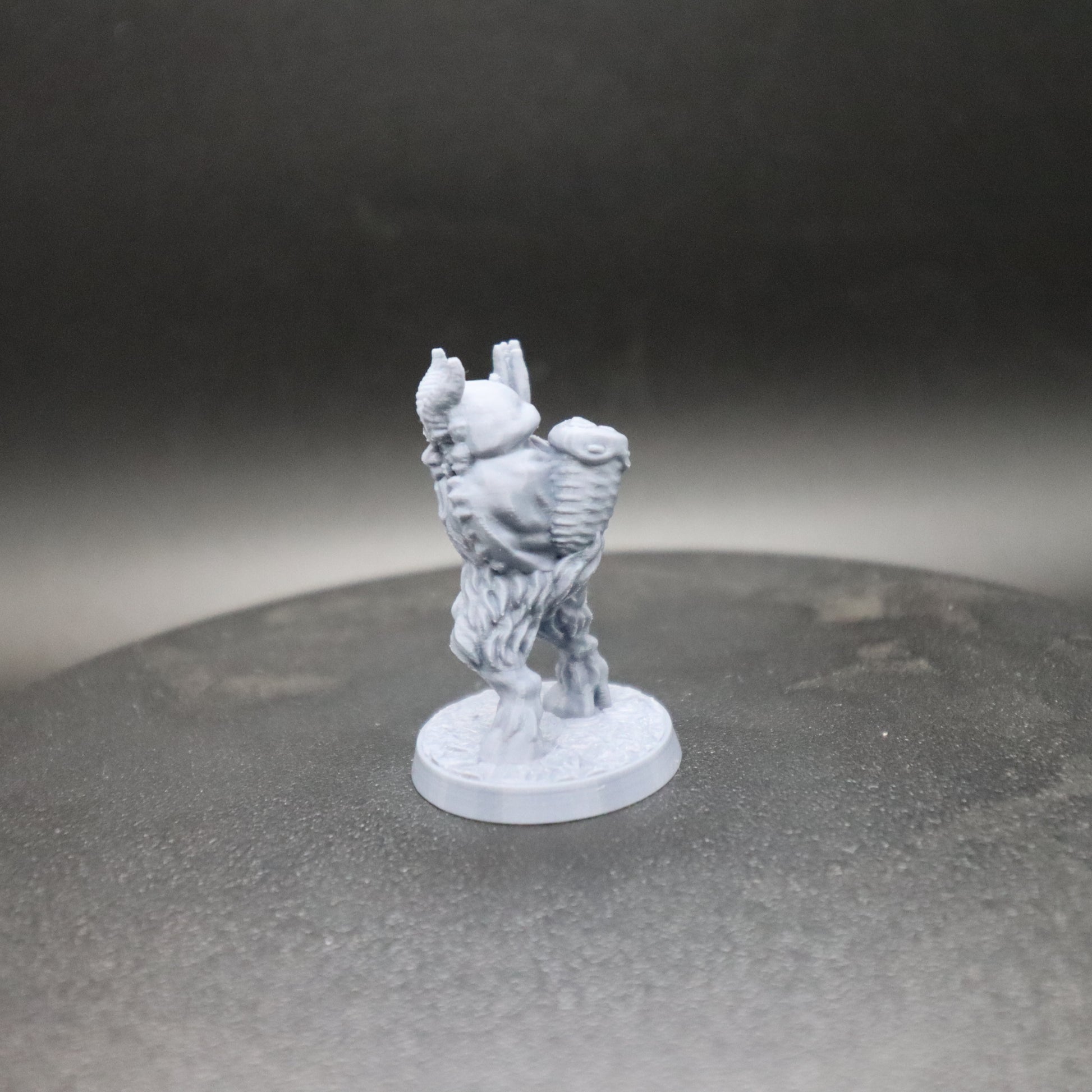 This concept is of Krampus is carrying a club and has a basket in its back for children,